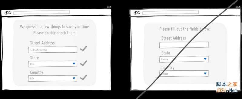 在表单字段中预先填写合理的默认值,这是一种帮助用户尽快完成表单填写的常见方式。最差劲的体验之一,就是用户曾经填写过某些数据,而你还要他们重复这些动作。使用经过调研验证的恰当数据,或是曾经保存过的用户输入内容作为表单字段的默认值,让用户少做些事情,多些轻松。