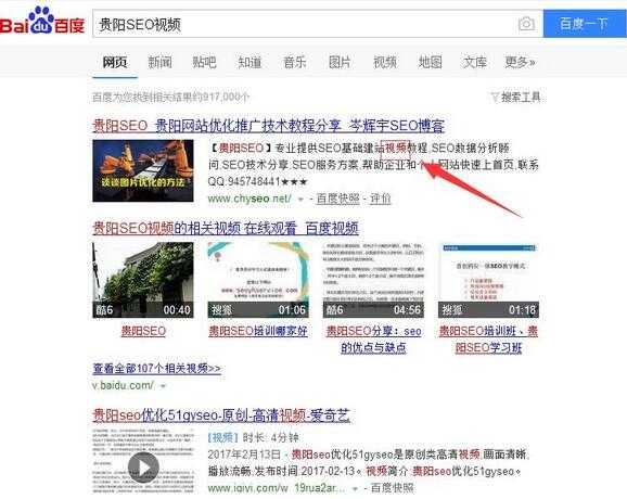 图中贵阳SEO视频这个关键词并未在标题中出现,但放在描述中,就有了匹配的机会,当然,这里举例是选用了一些竞争性不大的词来举例,竞争大的词一般在描述中就算匹配到了也很难有竞争力。大家能理解有这层意思即可。