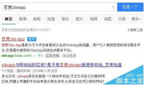 第一步,百度搜索百度siteapp,找到他们的官方网站,如下图: