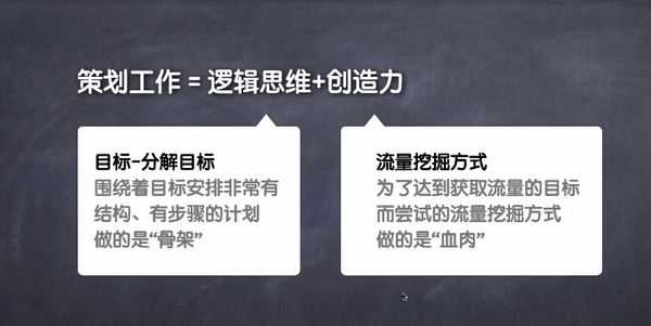 而现在我们很多人在做策划方案的时候,都是把方案的全部想像成是流量挖掘方式,仅此而已,却没有关注目标与分解目标这些结构,纯粹是盯在这个方案的曝光度,而不是去围绕整个方案的一个有效流量的目标去做事情。这是一个误区。