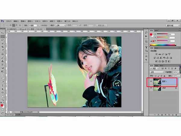1、打开PS文件,执行【文件-打开】命令,打开我们事先准备好的背景图像素材,然后利用【Ctrl+J】复制背景图层,得到图层1,如下图所示: