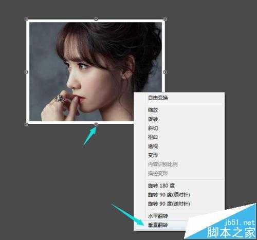4、然后ctrl+D取消选区,复制一层,ctrl+T变换位置,将中心点一道下方,右键选择“垂直翻转”