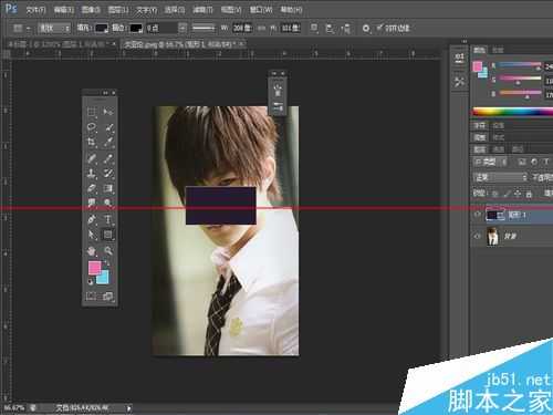 4、打开一张图片,点选矩形工具,在图片中绘制矩形。