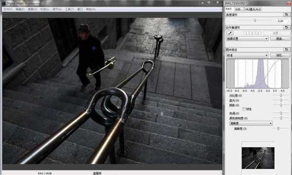 1、这次要从ACR RAW格式的后期预处理开始。我是佳能机器,用DPP就可以了,还是比较好用的。先在DPP中打开选定的照片。这张照片是抓拍的,拍摄时相机没来得及做调整,所以画面欠曝,而且当时的颜色就是这样的灰暗。但是照片的内容和构图、对焦都还可以(自认为的。。。好吧,烂片就烂片吧,高手勿笑),经过二次构图和色调的修饰,应该还能有挽救余地。