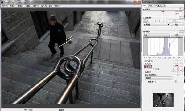 5、好了,后患都消除的差不多了,该回到第一项了。额。。。。。只调这么点?是的,所谓的"预处理",前提是先尽可能还原真实,然后把一张对比度、亮度、色彩都比较"正常"的图交给PS就好了。这里由于欠曝的缘故,适当用软件模拟增加曝光度(亮度调节)。另外由于佳能系统的风格问题,暗部一直不如尼康的透亮,容易糊在一起,所以也适当提亮阴影,这样就最大限度的保留了最多细节转交给PS进行后期