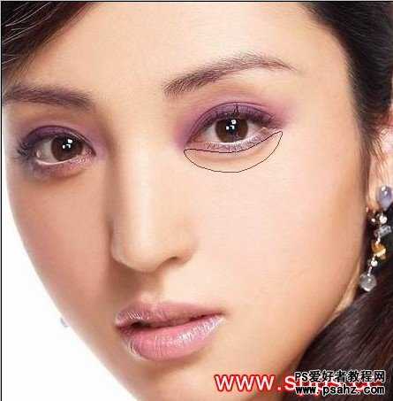 5.单击属性栏上的【路径】按钮,在窗口中绘制路径,选择人物的眼袋部分。