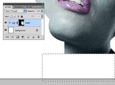 命令/按Ctrl键单击路径缩略图加载它作为一个选择。回到图层标签,针对“面部”的文件夹,然后添加蒙版。