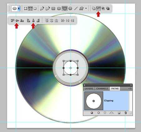 打开光盘图像,然后按Shift +命令/按Ctrl+ I来检查它的分辨率字段设置为300像素/英寸,将椭圆工具(U)为路径,并按住Shift键拖动来添加一个圆圈。如下图所示。.