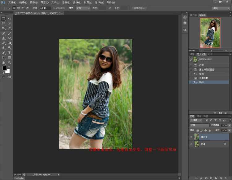 3,右键单击当前图层,使用自有变换,调整画面布局(当然这个是在有需要的时候进行)