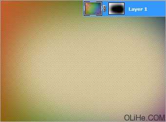 选择彩虹渐变图层,去滤镜>模糊>高斯模糊。设置半径为250。在这一层上创建图层蒙版, 用#FFFFFF色填充蒙版。使用大小350像素、颜色为#000000的柔软笔刷,按左图所示涂抹蒙版的中心。