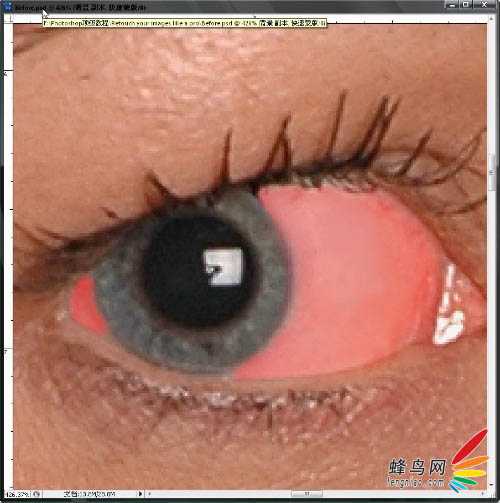 6、放大人物的眼睛,选择工具箱中的“图章”工具,处理人物眼白部分的血丝。