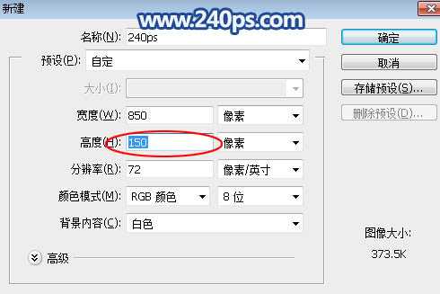 3、按Ctrl + N 新建画布,这里我们设置为850 * 150 像素,分辨率为72。600/150=4刚好是整数倍,宽度跟原始素材一样850。
