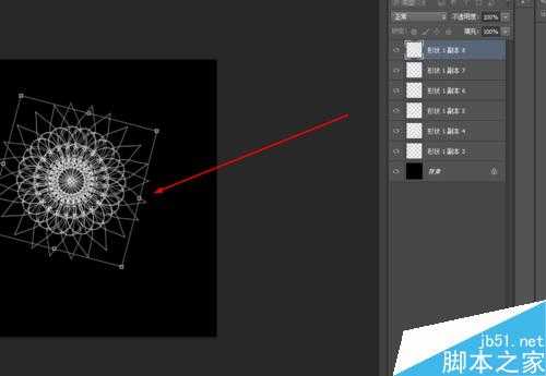 5、按ctrl+E合并所有的图层,再按ctrl+J复制合并的图层几个出来,ctrl+T自由变换,旋转15度角度
