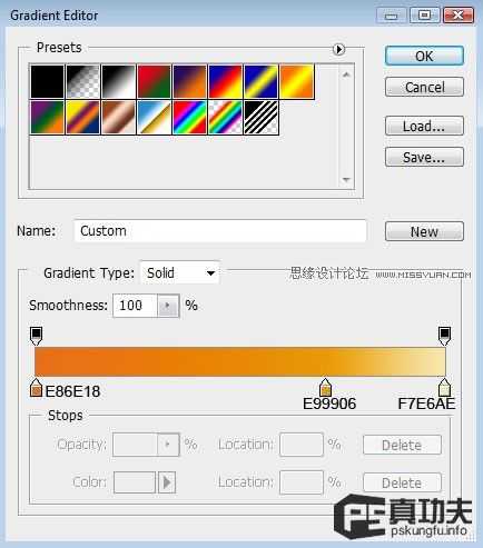 (功夫有话:作者的每一步都是有他自己的目的也许数值是枯燥的,但你要自己去看作者为什么这样设置颜色,如果是你,你会怎样渐变?功夫分析:作者的背景效果是中间亮四周暗,明显光线设置在中间了,所以接下来作者的颜色渐变是由浅到深向四周渐变的。当然,这不是叫大家要有多么精确的数值,颜色分配的具体位置,只是说明我们需要有这个意识)