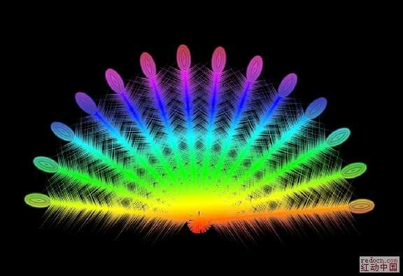 5.新建一层用多次用椭圆工具作绒毛的顶部后合并,在绒毛底部加一条直线一根绒毛就成了。