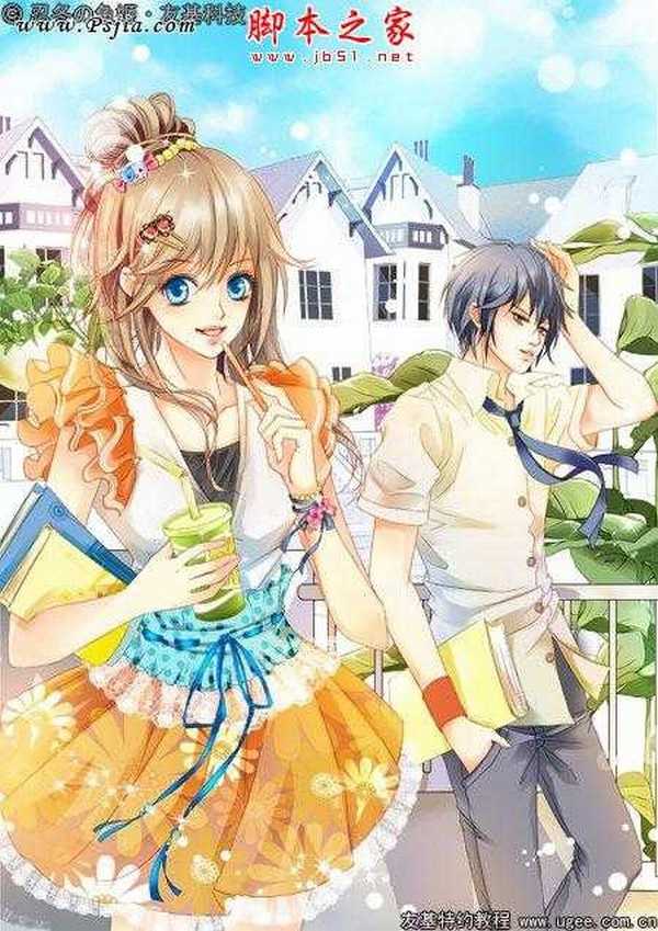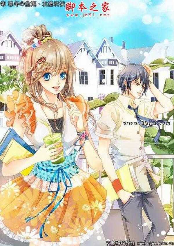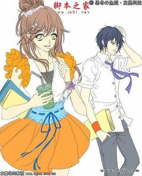 14.人物完成绘制 同样方法给男生上色,人物上色基本上就完成了,缩小看整体,做出细微调整。