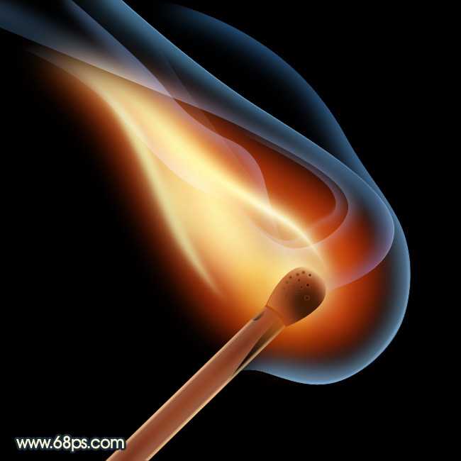 8、新建一个图层,用钢笔勾出火柴头部分的高光选区,羽化10个像素后填充红褐色:#D27222,确定后把图层不透明度改为:40%,效果如下图。