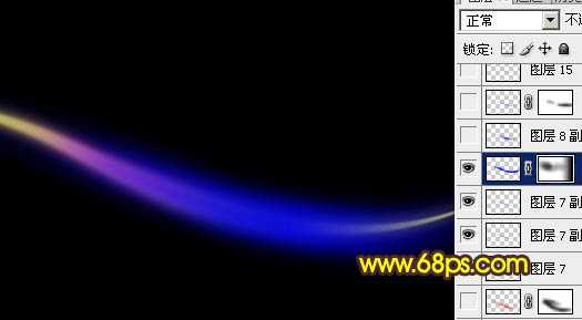 3、调出曲线的选区,选择菜单:选择 > 修改 > 收缩,数值为3,确定后按Ctrl + Alt + D 羽化3个像素,新建一个图层,把前景颜色设置为:#DC50AE,用画笔把选区中间部分涂上紫红色,如图6,涂好后吧图层复制一层,图层混合模式改为“柔光”,效果如图7。