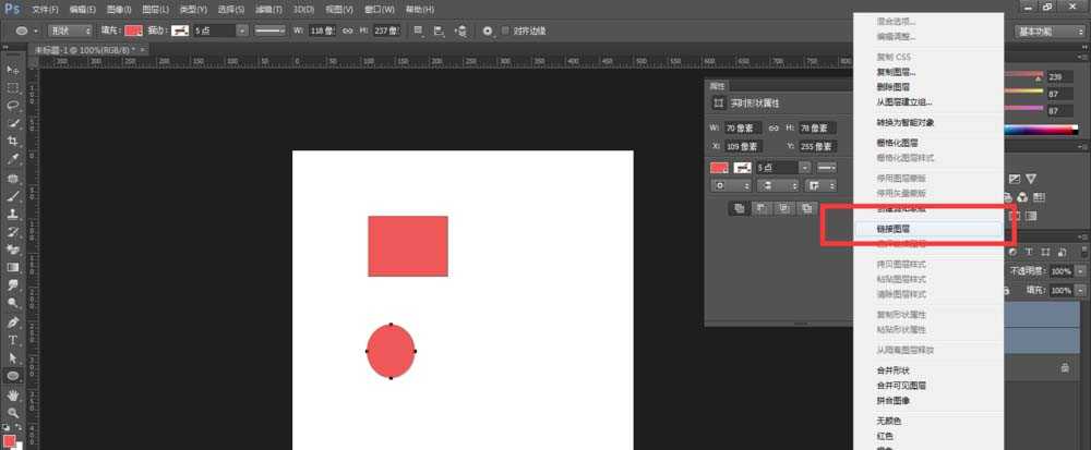 5、在这两个图层选中的状态下 按鼠标右键,选择链接图层 ,选择链接图层后 会发现这两个图层的右边有个锁链的 如图所示,