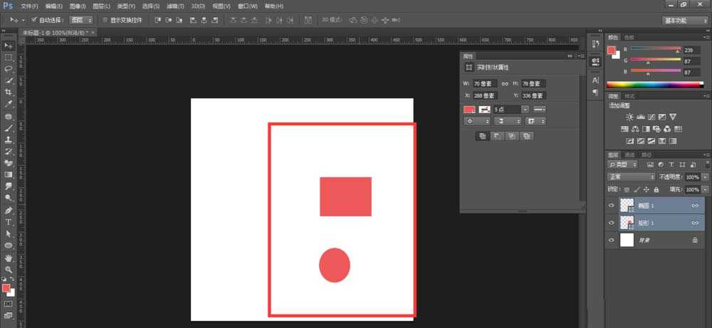 11、现在用移动工具单击任何一个图形,另外一个图层不会跟着移动了