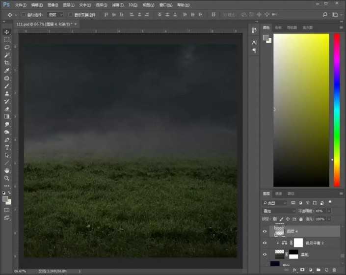 2.给草地图层添加【色彩平衡】并创建剪贴蒙版。