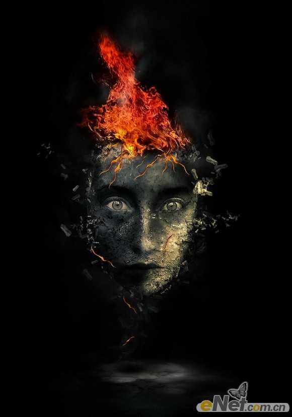 12、设置混合模式为“叠加”,用软角“橡皮擦”将头部去除,得到如下效果。