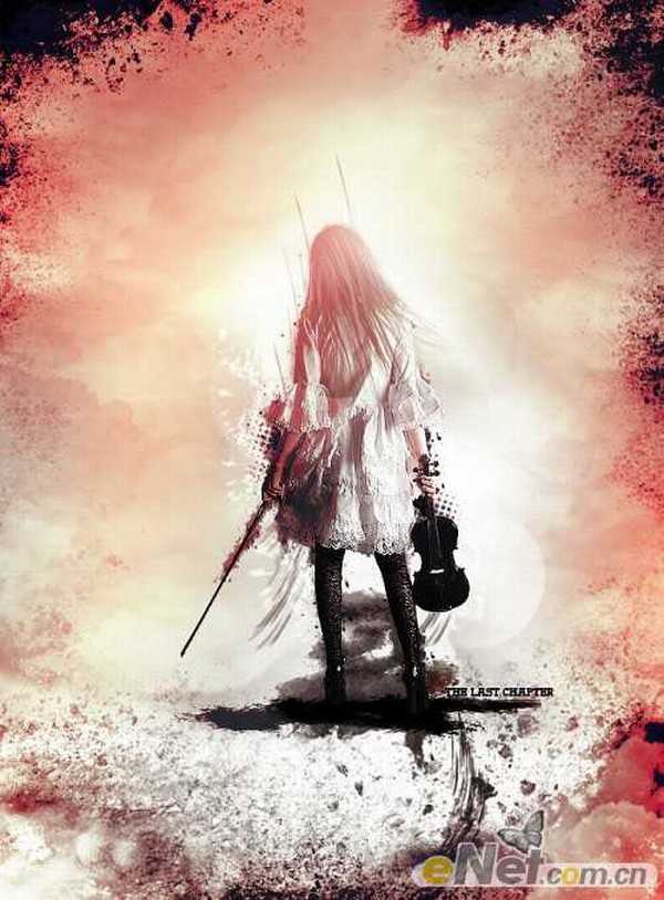 6、在小提琴和手臂后面添加一些黑色纹理,当然这些纹理可以用画笔添加上去,但是要注意画笔的透明度和选择画笔的笔尖。
