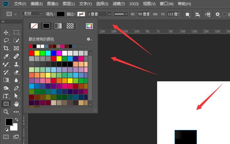 在PS2019中,建立画布,找到左侧的形状工具栏