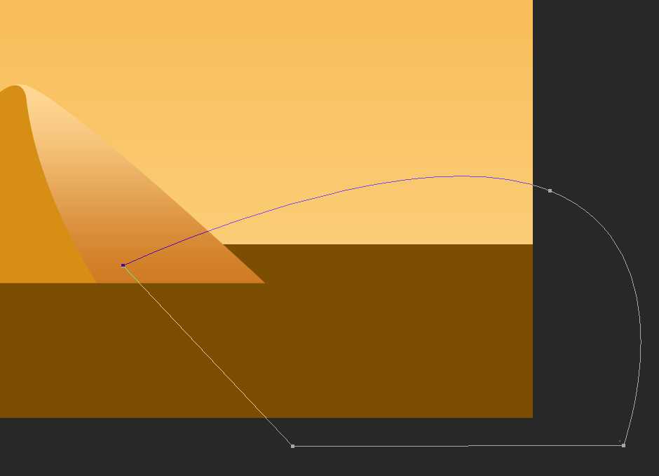 3、新建图层,用钢笔工具画出最近的沙漠,并用渐变填充,如图。