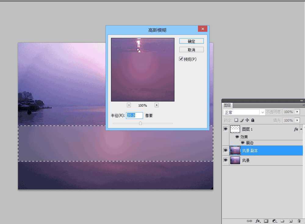 5、复制一个背景图层,并载入选区,滤镜>模糊>高斯模糊,半径设置为20