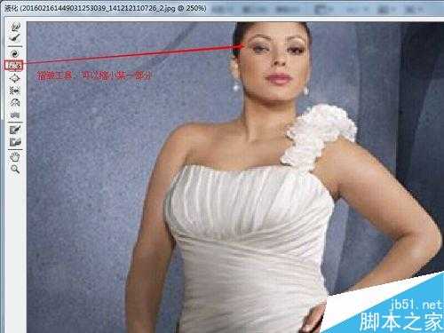 最后总结,瘦身最方便的就是第六个工具,左推工具。眼睛、胸、臀等加大就是膨胀工具了。如图我们利用左推将人物的腰身变细。