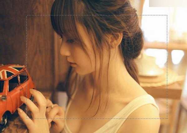 我们激活一下”应用调整时忽略选区,下面,我们回到暖色调妹子中,用矩形选框工具做一个选区。