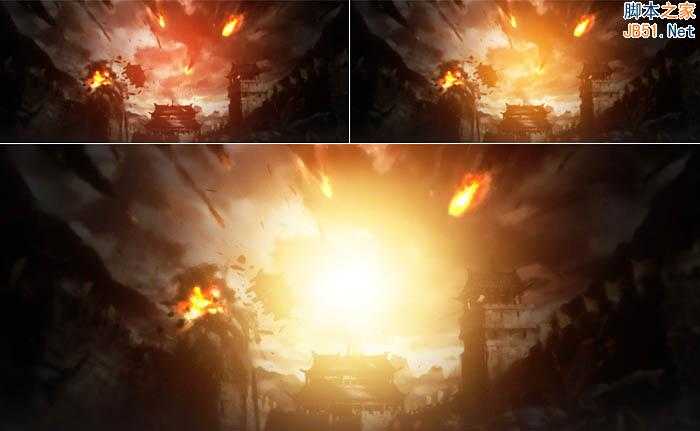 这里在对画面进行压暗处理的时候,并没有对画面本身具有的火球、爆炸火焰等进行相应处理,这些本身的火光后期可以利用,所以不用进行压暗,在处理的时候应该在蒙版上擦除这一部分。框内蒙版上的黑色区域即为火光部分,保留。