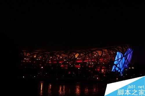 3、受制于拍摄角度的影响,可以选择鸟巢的大部分灯光处拍摄,被遮挡的部分则画面截取掉。