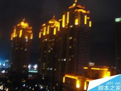 6、在用数码相机在夜间拍照高楼的装饰灯的时候要仰头拍照。