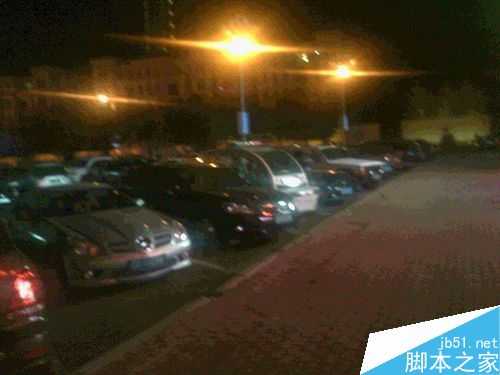 在夜间用手机拍照道路的路灯和车辆的行驶头灯,就要在停车位上找到合适的点来拍照。