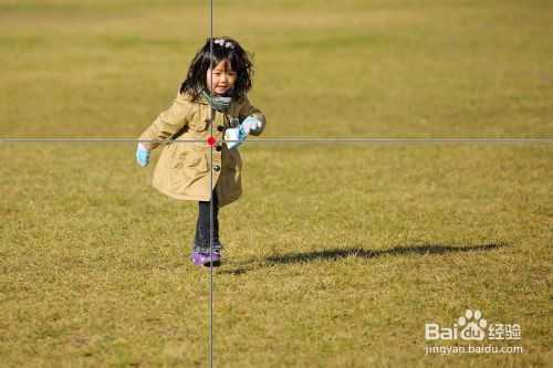 2、现在将小朋友放在距照片的黄金分割点上,周围草地的面积大小便发生了变化,避免了对称式构图,奔跑中的小朋友鲜活起来。