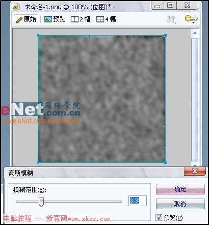 Step 5 -选择“滤镜”>“模糊”>“高斯模糊”,参数设置为:模糊范围 = 3.3,效果如图3所示。