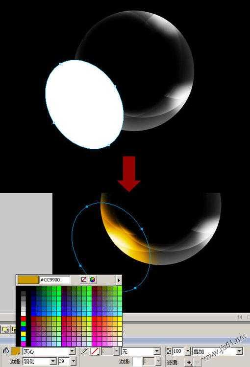 将最初画的圆复制一份副本,将图像混合模式改为“颜色减淡”,并将透明度设置为40%。