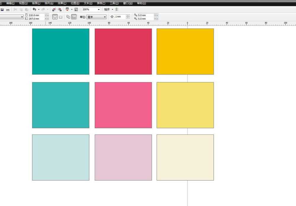 7、绘制多个矩形。在页面中,我们复制多个同等大小的矩形,来填充不同的颜色观察一下,我们就选择这个绿色系,做出深浅不一的样子