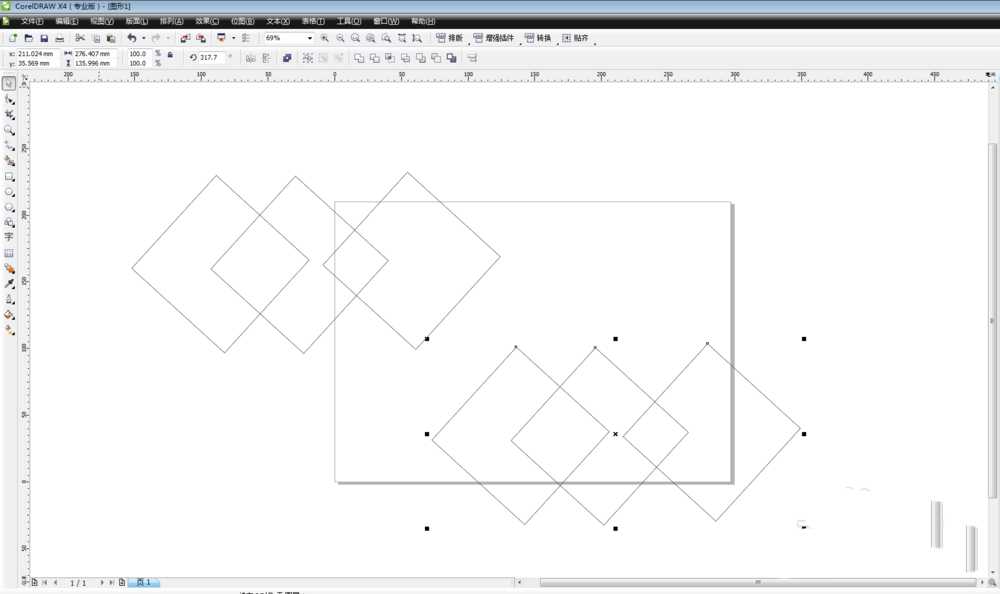 3、选中矩形,开始旋转矩形,然后左键移动矩形,鼠标右键复制矩形,如下图。