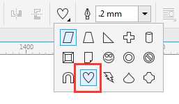 1. 鼠标单击选择工具栏上的“基本形状工具”,点击属性栏中三角形下拉按钮,选择里面的心形图标。