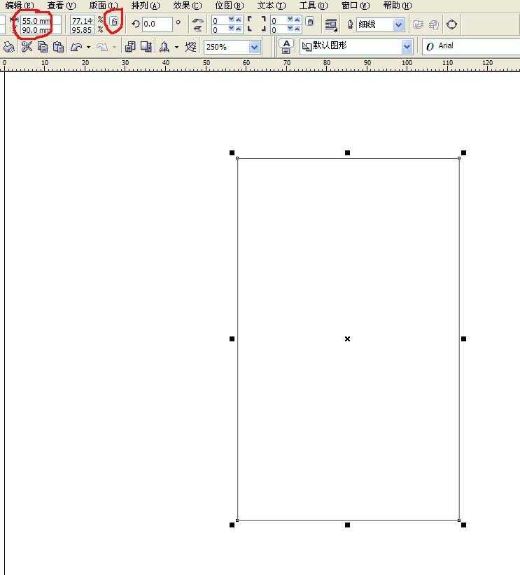 3、这个长方形的大小是可以修改的,怎么修改呢?根据图中所圈的地方改成你想要的尺寸。