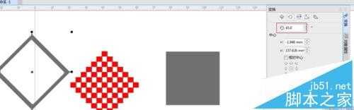 6、绘制一个正方形,将矩形填充步骤5的70%的灰色。复制一份,备份。将其中一个,选中复制(按住shift键点右键)缩小,填充白色。框选两个,将其修剪。将里面那个删除,就出现边框的效果了。按alt+F8旋转-->旋转45°-->运用