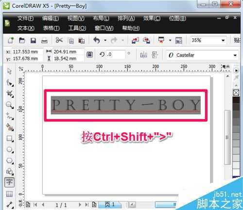 3、这时大家就可以看到cdr中的字符间距已经调大了许多。