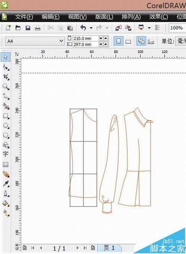 4、然后复制衣身和袖子,水平镜像。得到如图: