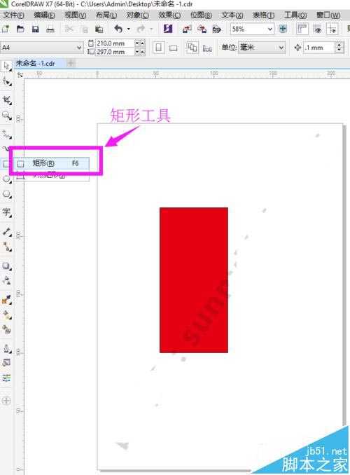 选择工具箱中的矩形工具,任意的绘制一个矩形。为了方便观察,我们点击右方的颜色条给其填充上红色,如下图所示。