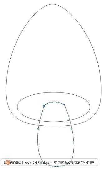 2、绘制封闭图形(注意节点与蘑菇柄节点数量相同),填充深橄榄色。然后在蘑菇茎与封闭图形之间创建调和。