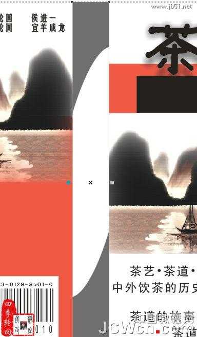 选择它,并按“Ctrl+U”取消群组快捷键,将左边的内容删除,只保留红色矩形和水墨画素材,效果如图如图14D所示: