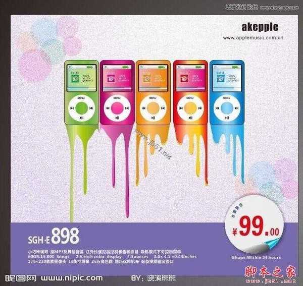 本教材主要使用Coreldraw利用不同的颜色设计MP4海报教程,大家好,这次为大家分享一幅MP4的产品宣传广告,合理安排图形元素和文字,突出主题,非常的简单,重复使用矩形工具而已,填充颜色。